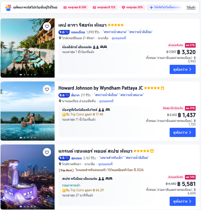 Q: โรงแรมติดทะเลพัทยา 5 ดาว ราคาเริ่มต้นประมาณเท่าไร?